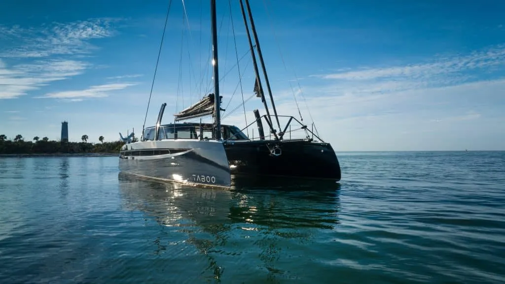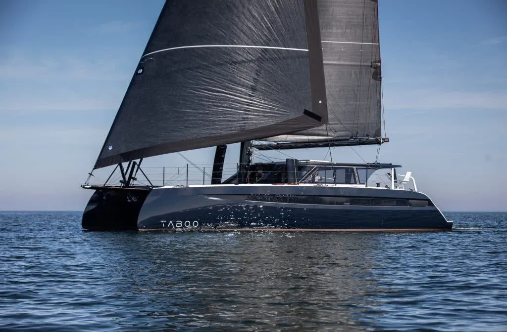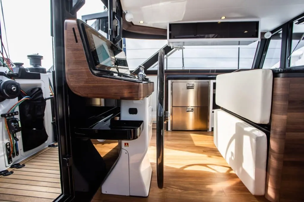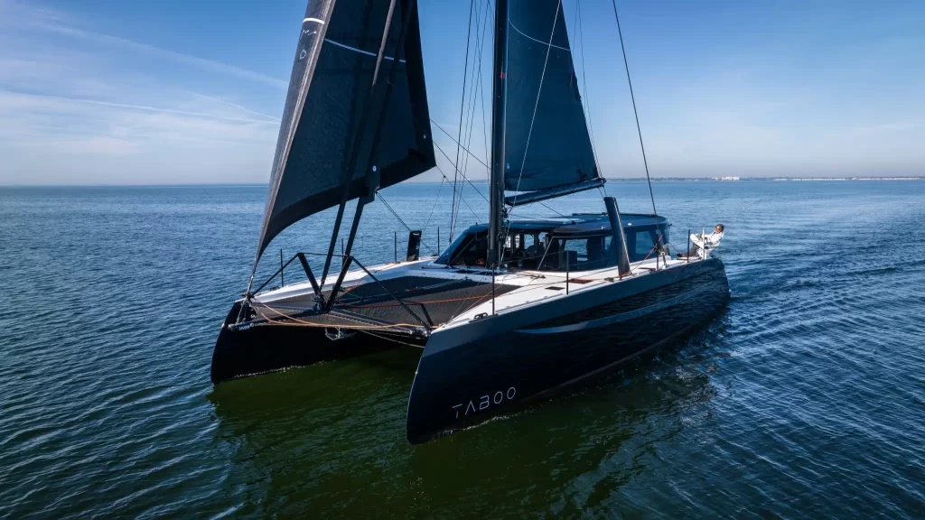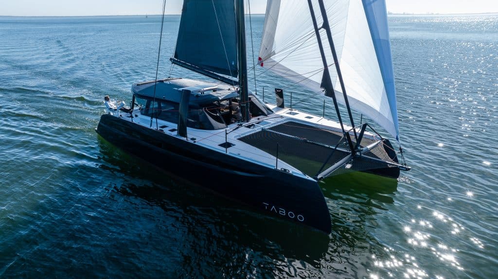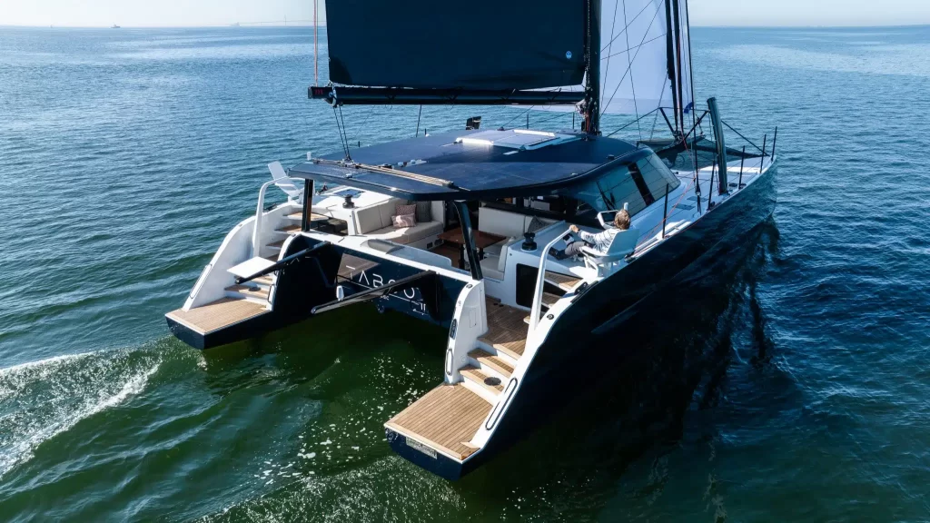 The HH52 dual aft helm configuration can be ordered as an e-glass “Ocean Cruising” or 100% carbon-fibre “Sports Cruising” version and will feel more familiar to those used to monohull sailing. With helms at both aft quarters of the yacht, all sailing and steering is managed with clear visibility of the sails or can be swung inboard for protection from the elements. Meanwhile, a larger interior saloon provides a level of comfort and refinement not found in any other performance cruising catamarans this size.