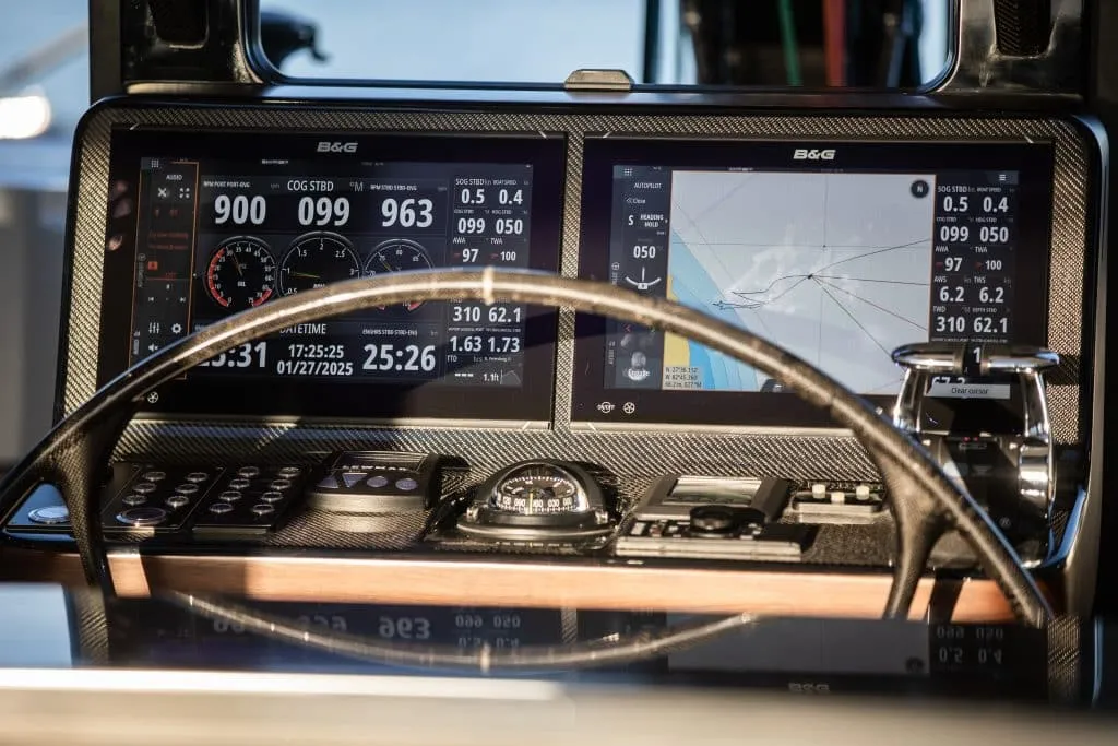 The HH52 has been designed to work with our parallel diesel/electric hybrid, a large solar array on the cabin top and hydro-regeneration while sailing.