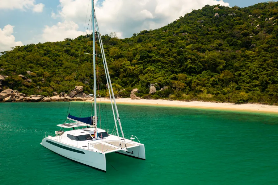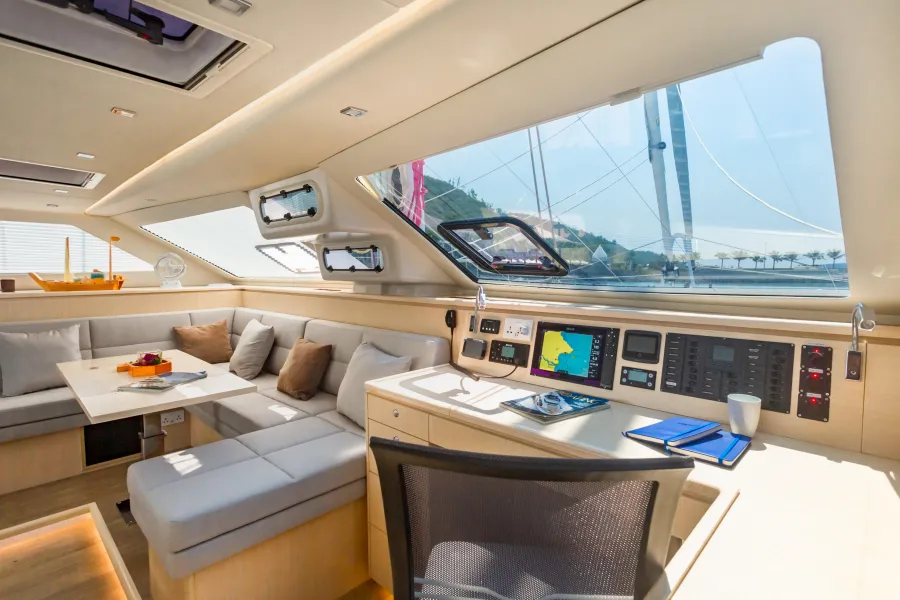 With simple sailing systems, twin protected helms and a large open cockpit space, this blue water luxury cruising catamaran sets the standard for offshore sailing. With daggerboards, narrow hulls, performance sails and light weight construction she is guaranteed to sail quickly and smoothly.
