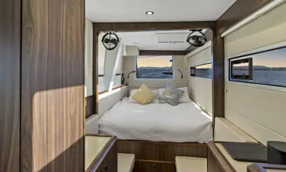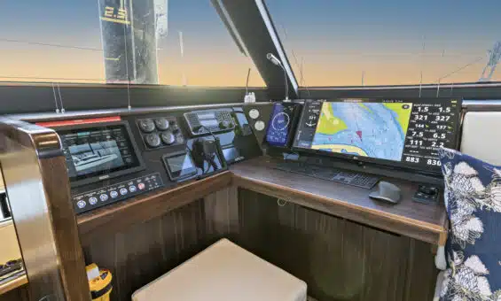 - Air-conditioning – 58,000 Frigomar efficient DC system – 2 units in main salon plus one in each sleeping cabin
