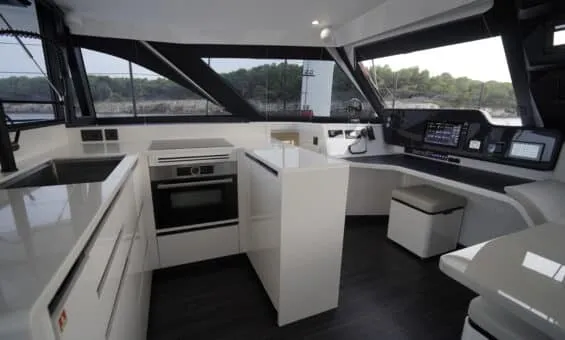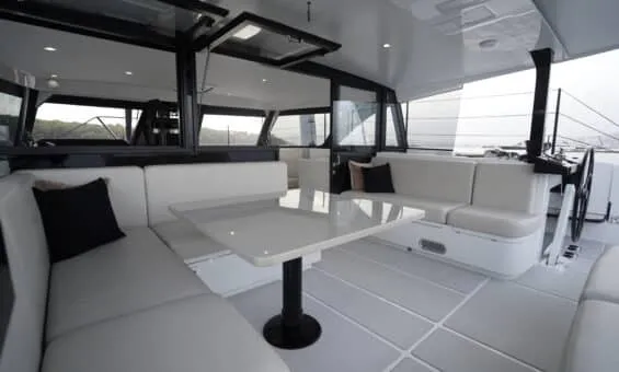 The SC already comes standard with eco-drive hybrid diesel / electric motors, lithium batteries, 4.1 kw of Solar, carbon fibre mast / longerong beam / daggerboards, and twin Jefa rotating wheel pedestals as to name a few inclusions, but this boat is fully spiced and loaded with optional extras, which you may choose to alter, but currently includes: