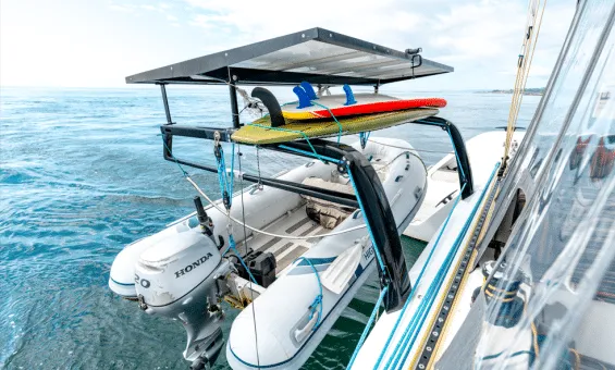 All Outremer 5X are amazing vessels,and Wikwiki is even more so. Not only is she a V2 version with sporty reverse bows and many performance options such as carbon mast, carbon bimini, carbon reinforced bulkheads, carbon davits,Kevlar rigging, and daggerboards, but she has the full suite of sails, from the Code Zero (new) and Parasailor to the 3Di mainsail and the heavy air self-tacking staysail, for swift passages in almost any conditions.