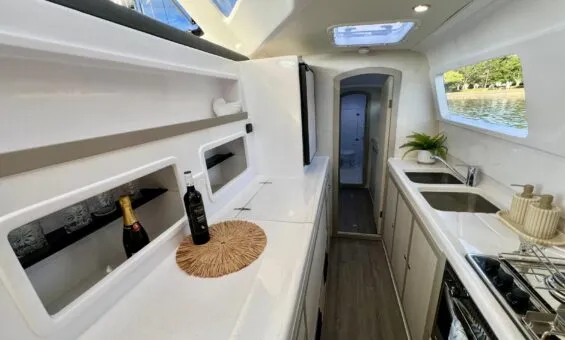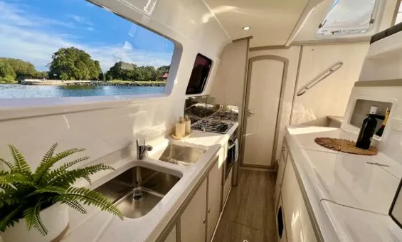 The Seawind 1160 Lite offers the best performance of Seawind mini keel range and one of the best performing cruising cats it’s siz in the world, thanks to light weight construction with foam core furniture and carbon front beam, low drag and low maintenance outboards, plus a powerful yet easy to operate sail plan with self tacking jib and mainsail. This boat is ideal for cruising couples who love to sail or would equally be a popular charter boat in the Whitsundays with strong ROI.