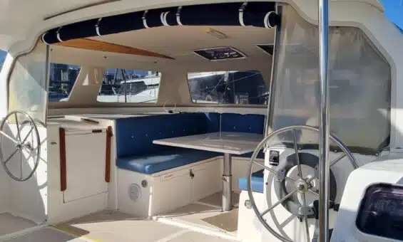Irene J is a modest catamaran by today’s standard and yet the care that this owner has taken with maintaining Irene J is apparent as soon as you step onboard. Friends or family will enjoy her with accommodation in both hulls extending to 4 sleeping spaces. There is a tidy galley with refrigeration, and a gas BBQ centred on Seawind’s ever popular transom seat. The cockpit is protected by a hard top bimini and there is a light 1.8m tender with 2HP outboard which makes it easy to get ashore.